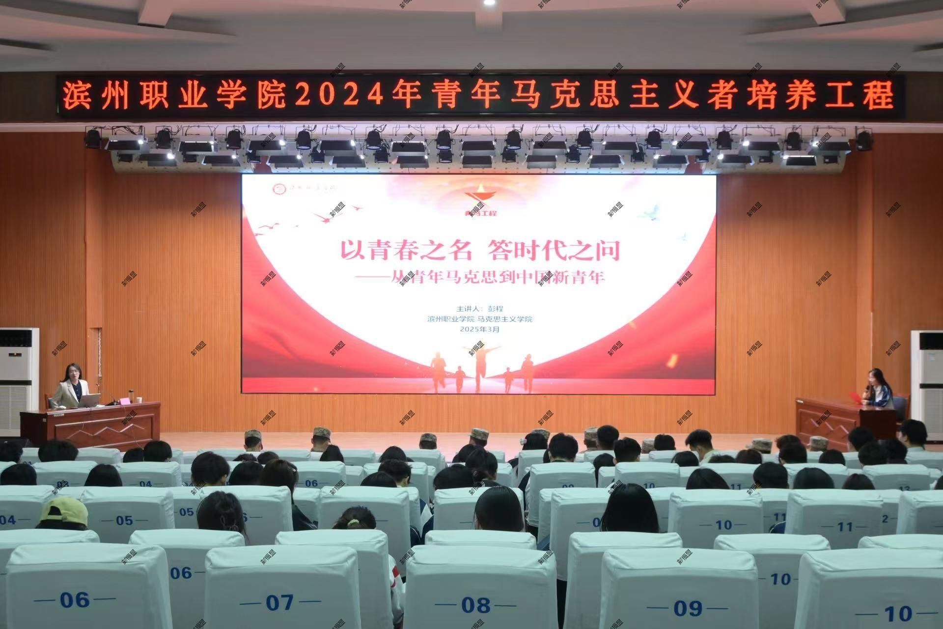 彭老师以马克思独立思考时期的蜕变历程为切入点,通过对比百年前与新时代青年的奋斗历程,生动展现了中国青年在民族复兴道路上的使命传承。本次理论课程既回溯了五四青年为救亡图存的觉醒抗争,又以大疆创始人汪滔等当代青年为例,阐释了新时代青年在科技创新领域的责任担当。结合滨州发展实际,彭老师重点介绍了滨职 "团企校实践育人共同体" 在产业链打造 “红色堡垒”的创新模式,以及 “院中店”学生创业者、工地 “学生工程师” 等技能报国典型,深刻揭示了青年成长与区域发展的双向赋能逻辑,激励学子以马克思主义为指引,在职业教育创新实践中书写新时代青春答卷。