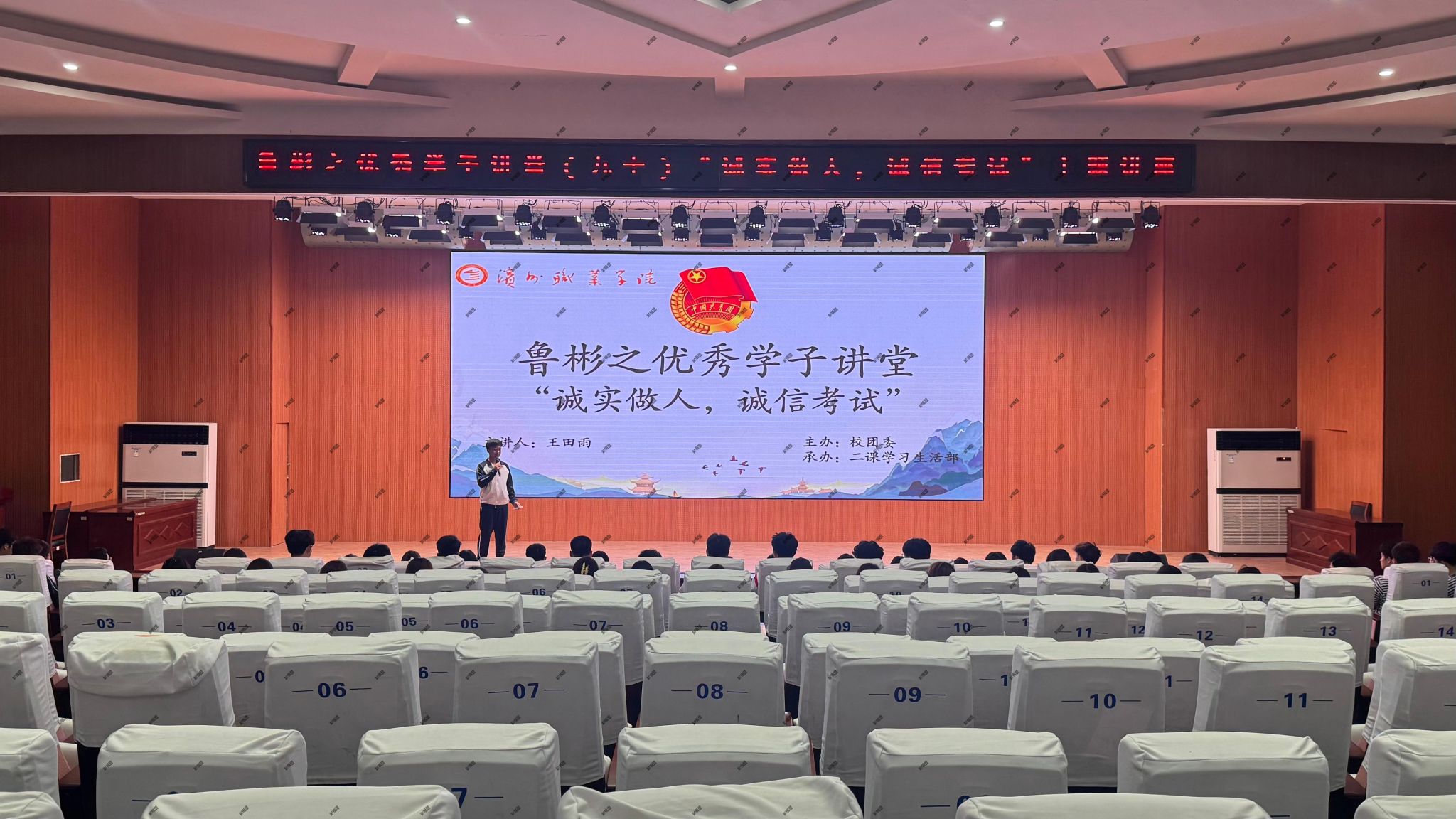 校团委主办的第九十期“鲁彬之优秀学子讲堂”近日在图书馆报告厅顺利开讲。本次讲座主题为“诚信考试”。主讲人为来自机电工程学院的王田雨同学,本次活动通过校团委二课学习生活部在到梦空间提前发布活动预告,共有169名同学自愿报名参加活动。